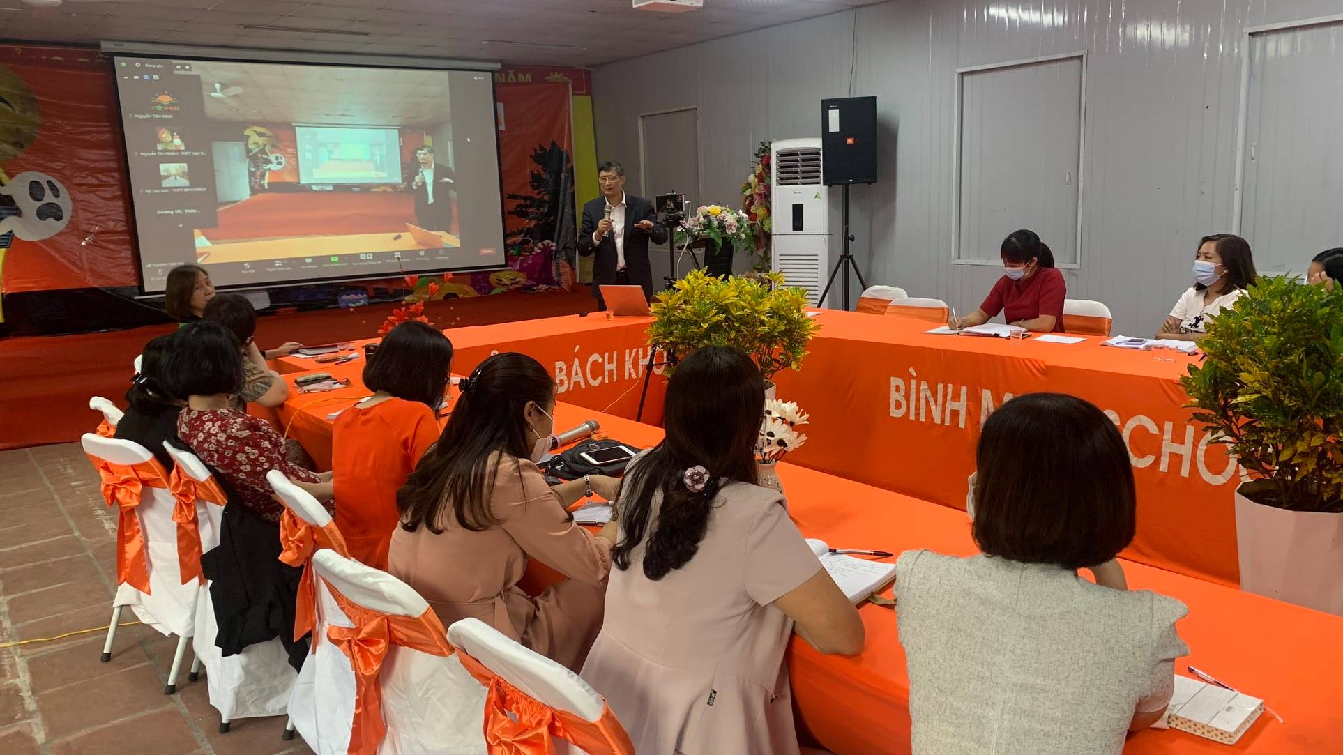 Nguyễn Văn Cường (Đại học Potsdam, chuyên gia tư vấn giáo dục quốc tế của Bộ GD&ĐT) tập huấn cho giáo viên Hệ Thống Giáo Dục Bình Minh qua 2 hình thức: trực tiếp và trực tuyến.