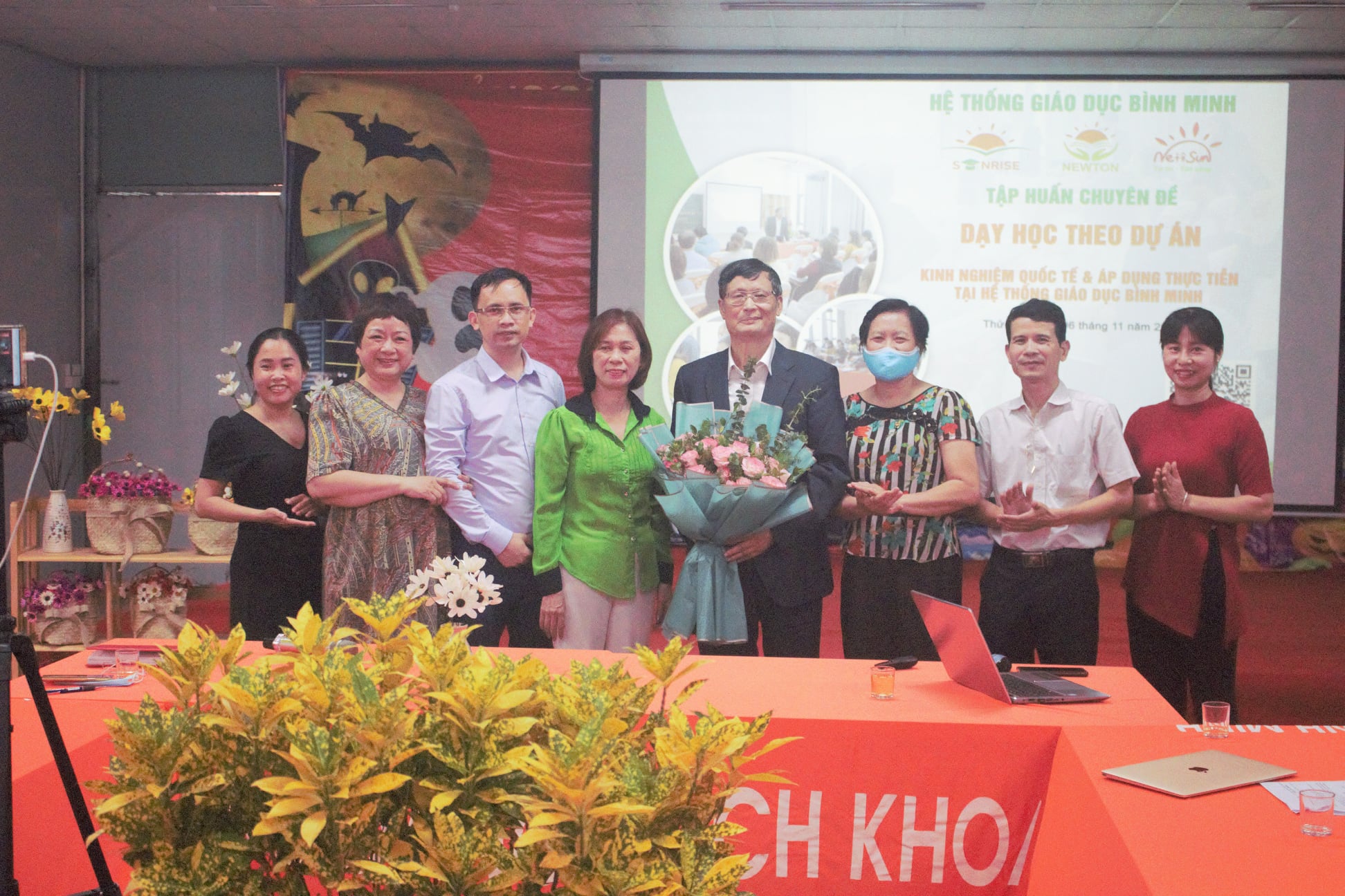 Ngày 06/11/2021, Hệ thống Giáo dục Bình Minh tổ chức sinh hoạt chuyên môn và tập huấn chuyên đề Dạy học theo dự án – Kinh nghiệm quốc tế và áp dụng thực tiễn tại Hệ thống Giáo dục Bình Minh bằng hình thức trực tiếp kết hợp với trực tuyến. Tham dự tập huấn có hơn 70 cán bộ, giáo viên các trường thành viên trong Hệ thống Giáo dục Bình Minh gồm: Mầm non Newsun, Tiểu học-THCS Newton Hoài Đức, THPT Bình Minh.